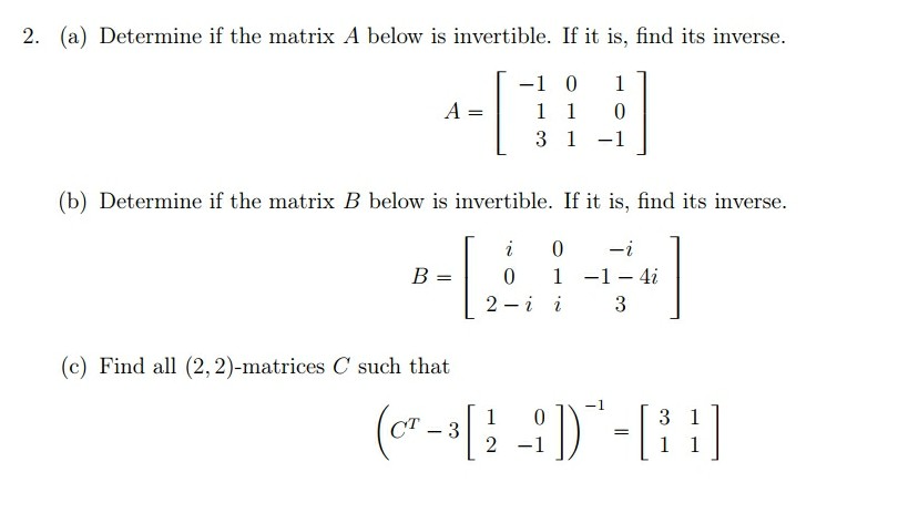 Solved 2 A Determine If The Matrix A Below Is Invertible Chegg Com
